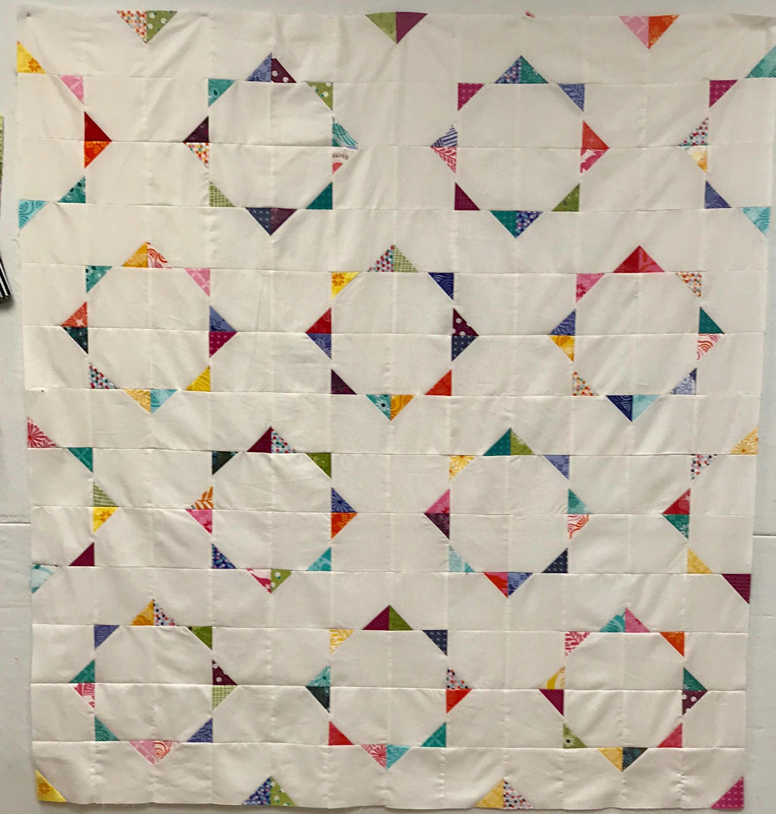 The rows are all assembled, but my considerable stash offered up nothing suitable for borders or backing. Guess this calls for a little armchair shopping.